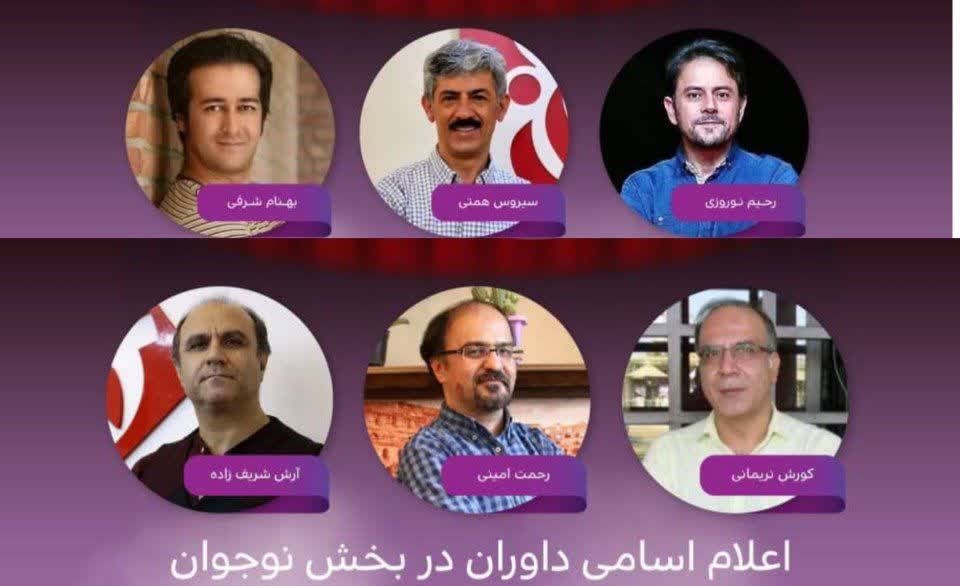 بر این اساس در بخش نوجوان، کورش نریمانی، رحمت امینی و آرش شریفزاده به عنوان هیأت داوران انتخاب و منصوب شدهاند.
